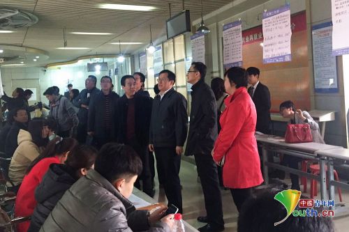 3月16日,团中央工作厅副主任、“青年之声”归纳和谐工作室主任郭峰在保定市下沉底层期间,观赏调研青年专场招聘会。共青团保定市委供图