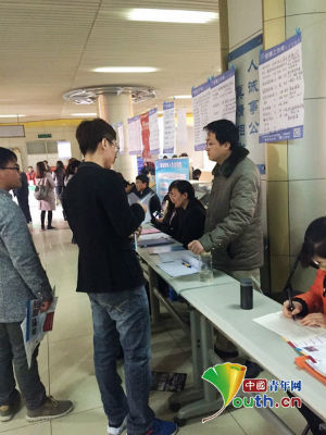 “青年之声·2016年工作服务季——芳华扬帆·愿望起航”青年专场招聘会现场。共青团保定市委供图